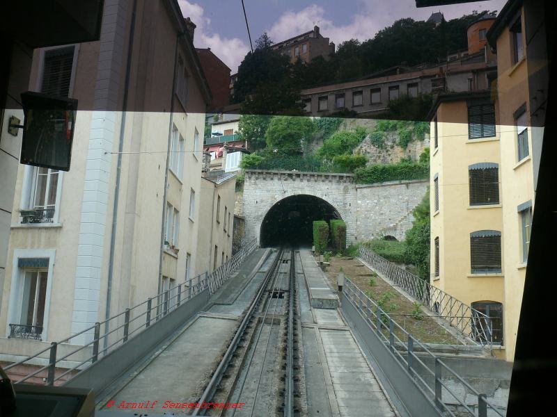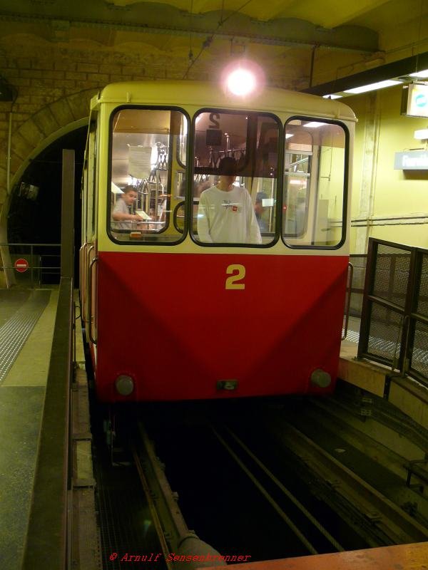 Hier steht Wagen2 der Standseilbahn von Saint-Jean (wird auch Vieux-Lyon = Lyon-Altstadt genannt) nach Fourvière in der Ausgangsstation.