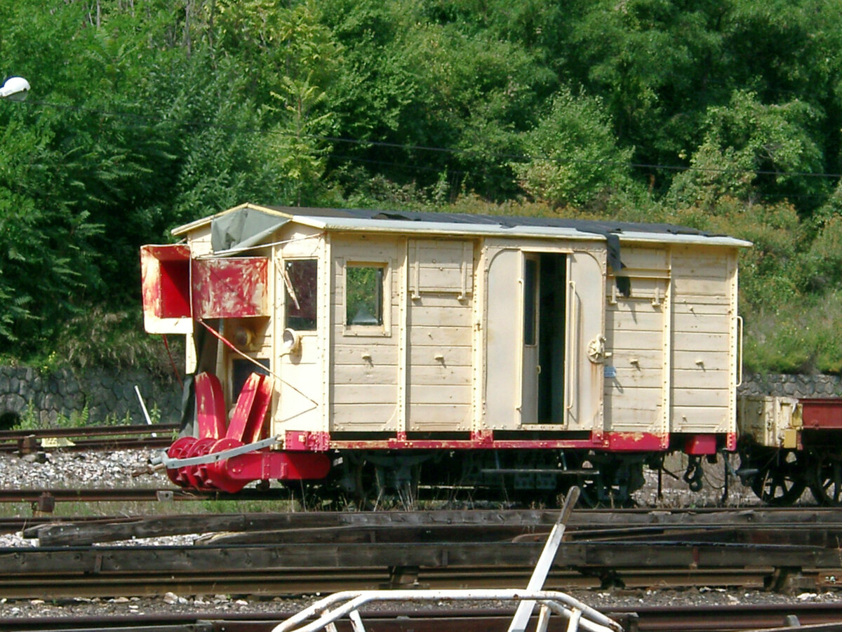 Der Train Jaune wird mit 850 Volt Gleichstrom betrieben, die Stromaufnahme folgt über eine seitliche Stromschiene. Im Bahnhof Mont-Louis-La Cabanasse sieht das in diesem Weichenbereich so aus. Mont-Louis-La Cabanasse, 24.5.2023