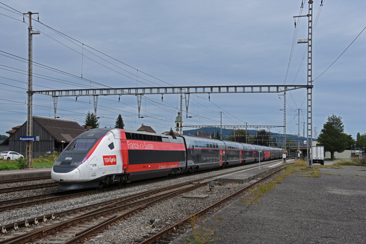 TGV Lyria 4716 durchfährt den Bahnhof Rupperswil.