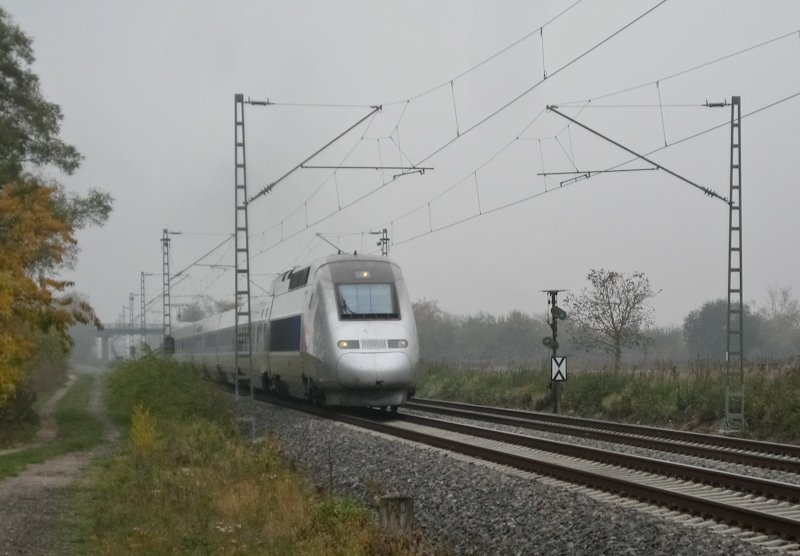 TGV 9573 (Paris Est - Stuttgart Hbf) am 27. Oktober 2009 bei Forchheim.