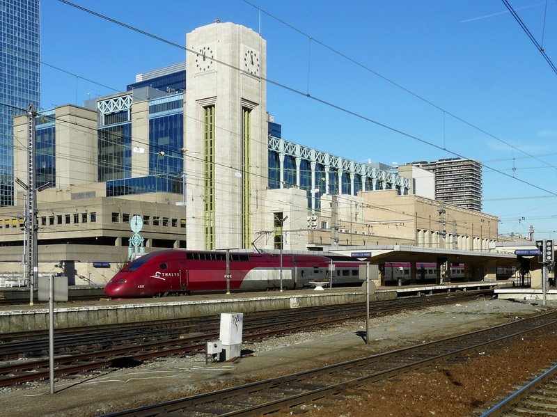 Angekommen in Brüssel Nord fotografierte ich dass Bahnhofsgebäude mit dem zur Abfahrt bereit stehenden Thalys 4332. 17.02.08