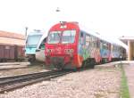 Neben Wasser nachfüllen und einer Innenreinigung, wird die Frontpartie des MAN Triebzuges mittels Gartenschlauch vom ärgsten Dreck befreit. Pirgos 30.10.2006