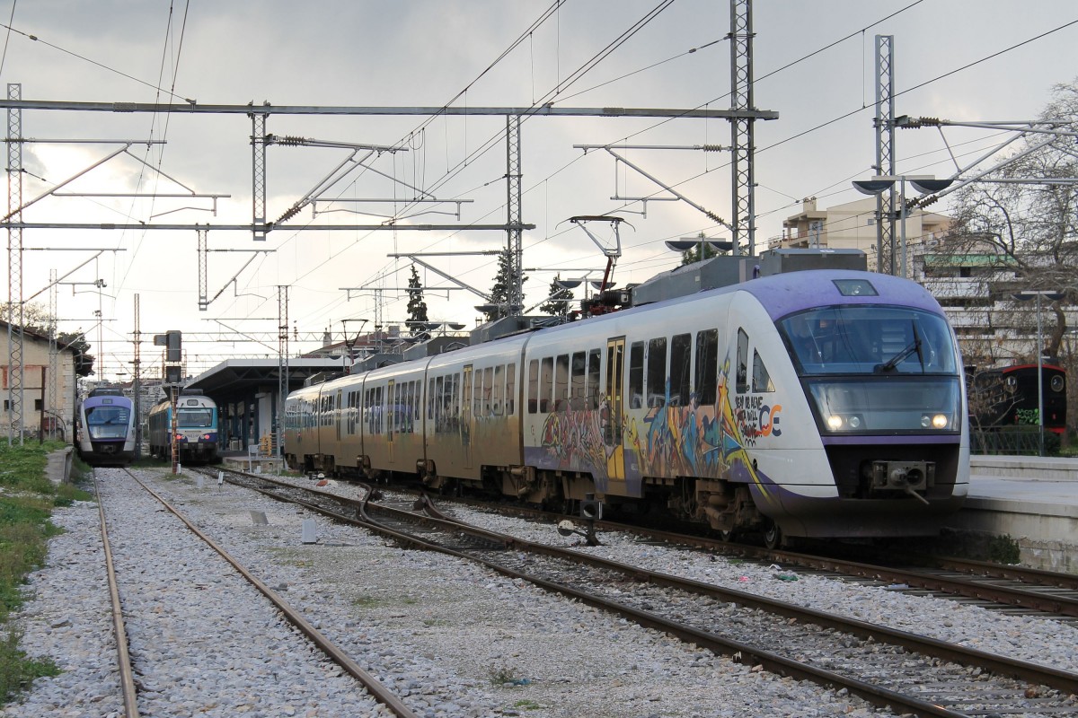 Desiro 460.112-460.512 der OSE/ΟΣΕ (Organismos Sidirodromon Ellados/Οργανισμός Σιδηροδρόμων Ελλάδος) mit Regionalzug Larissa/Λάρισα- Thessaloniki/Θεσσαλονίκη auf Bahnhof Larissa/Λάρισα am 27-2-2013.