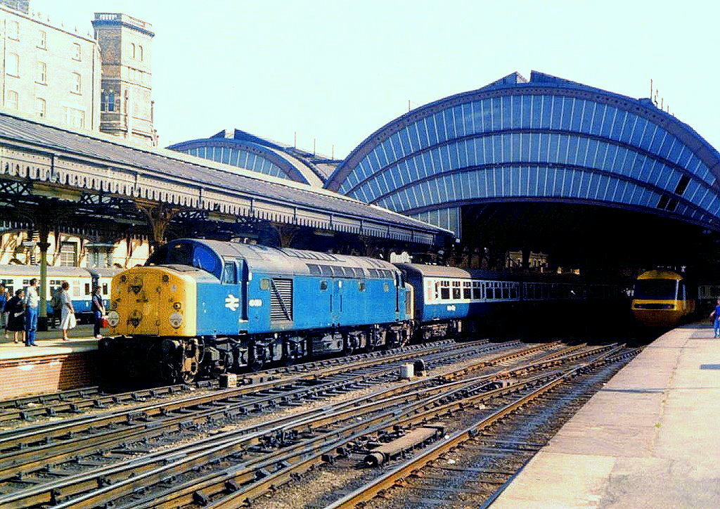 Class 40: 200 Lokomotiven wurden von English Electric zwischen 1958 und 1962 gebaut. Aufnahme der 40 015 in Bangor am 21.Juli 1974.