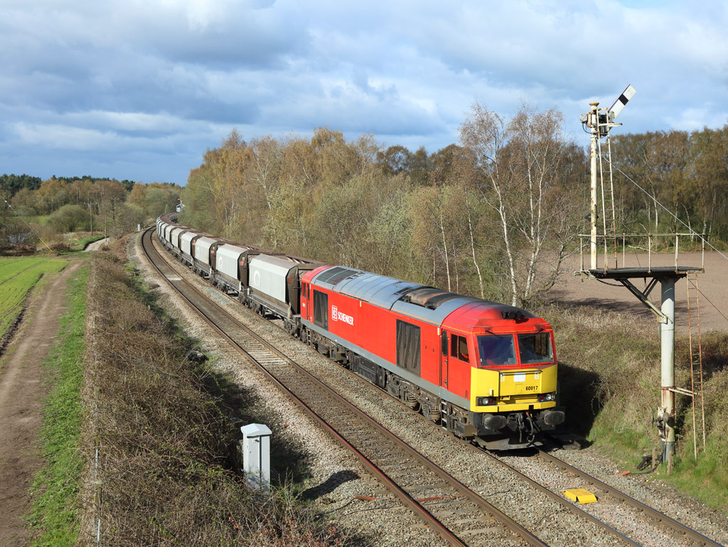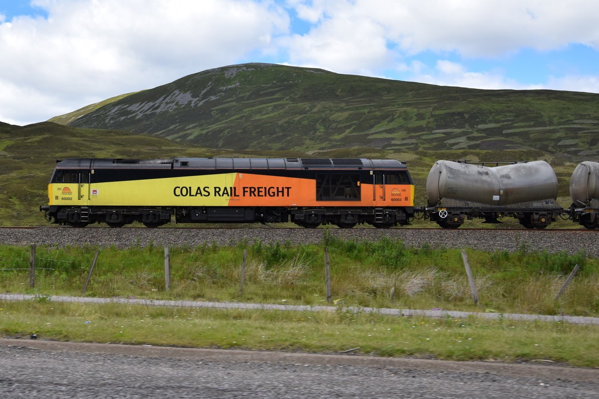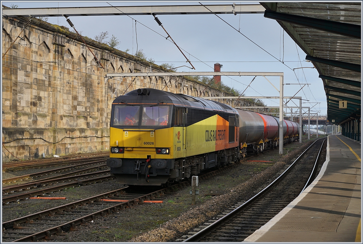 Die "Mainline" Class 60 079 fährt mit einem Telehauben- Güterzug durch den Bahnhof von Cardiff Central /Caerdydd Canolog.