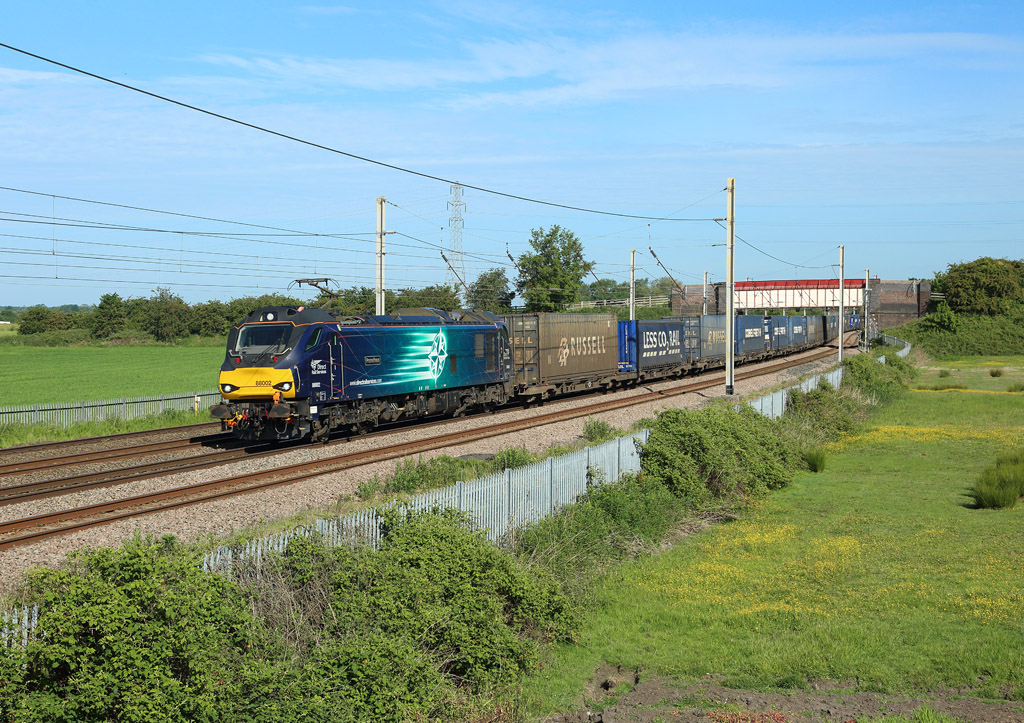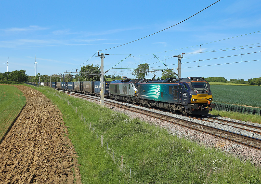 88005 & 68015 pass Watford Village whilst hauling the diverted 4Z45 Daventry to Mossend. Due to engineering work north of Crewe the train was diverted via London and the East Coast Main Line 25th May 2020 Laurence Sly