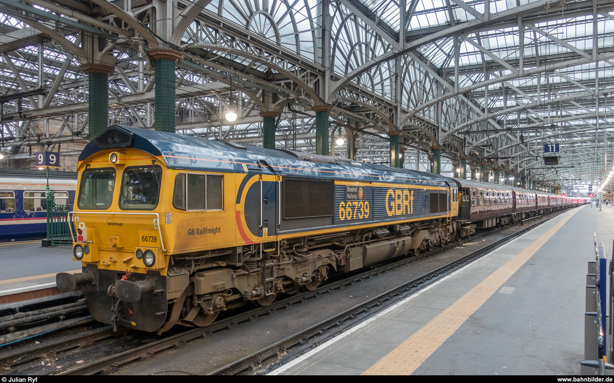 Edinburgh, Weaverly Station - Leider zu spät gesehen, dass auf der anderen Seite des Bahnhofes der berühmte "Royal Scotsman" stand - nach einem Sprint konnte ich nur noch den Schlusswagen fotografieren.