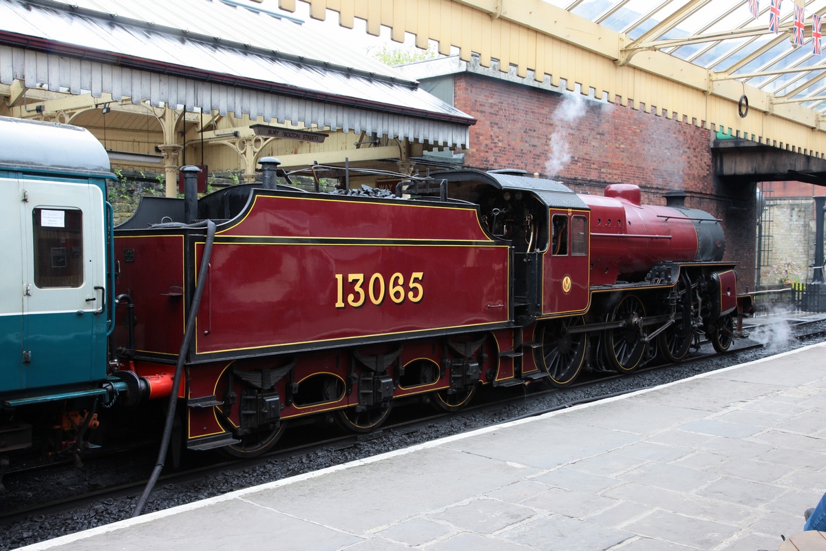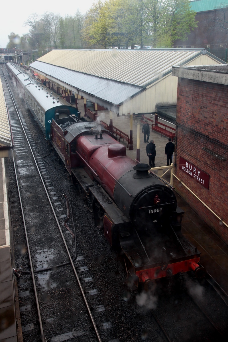 Die 1927 bei LMS Crewe gebaute 13065 der LONDON MIDLAND & SCOTTISCH RAILWAY COMPANY in der Stn. Bury Bolton Street am 27.04.2018 beim Wasser fassen. Rüdiger Ulrich