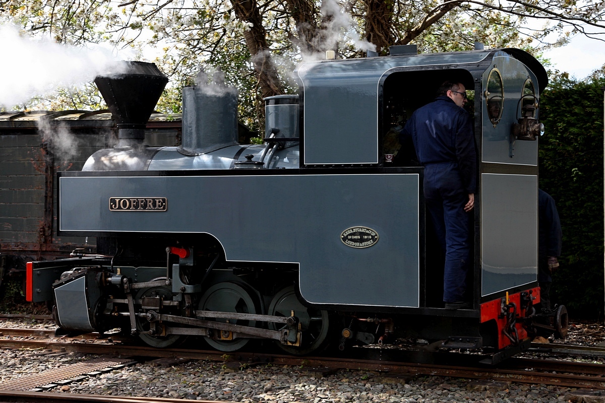 1915 wurde die JOFFRE bei Kerr-Stuart (Fabr.-Nr. 2405) gebaut. Sie entstammt einer Serie von 70 Lokomotiven, die unter Lizenz von Deauville, für französische Artilleriebahnen gebaut wurden. Nach dem Krieg kam sie zu einem Steinbruch bei Rixent, Nähe Calais. 1974 wurde sie von der West Lancashire Light Railway übernommen und ist dort seit 2012 im Einsatz. Am 02.05.2018 wurde sie beim Rangieren in der Stn. Becconsall aufgenommen. Rüdiger Ulrich