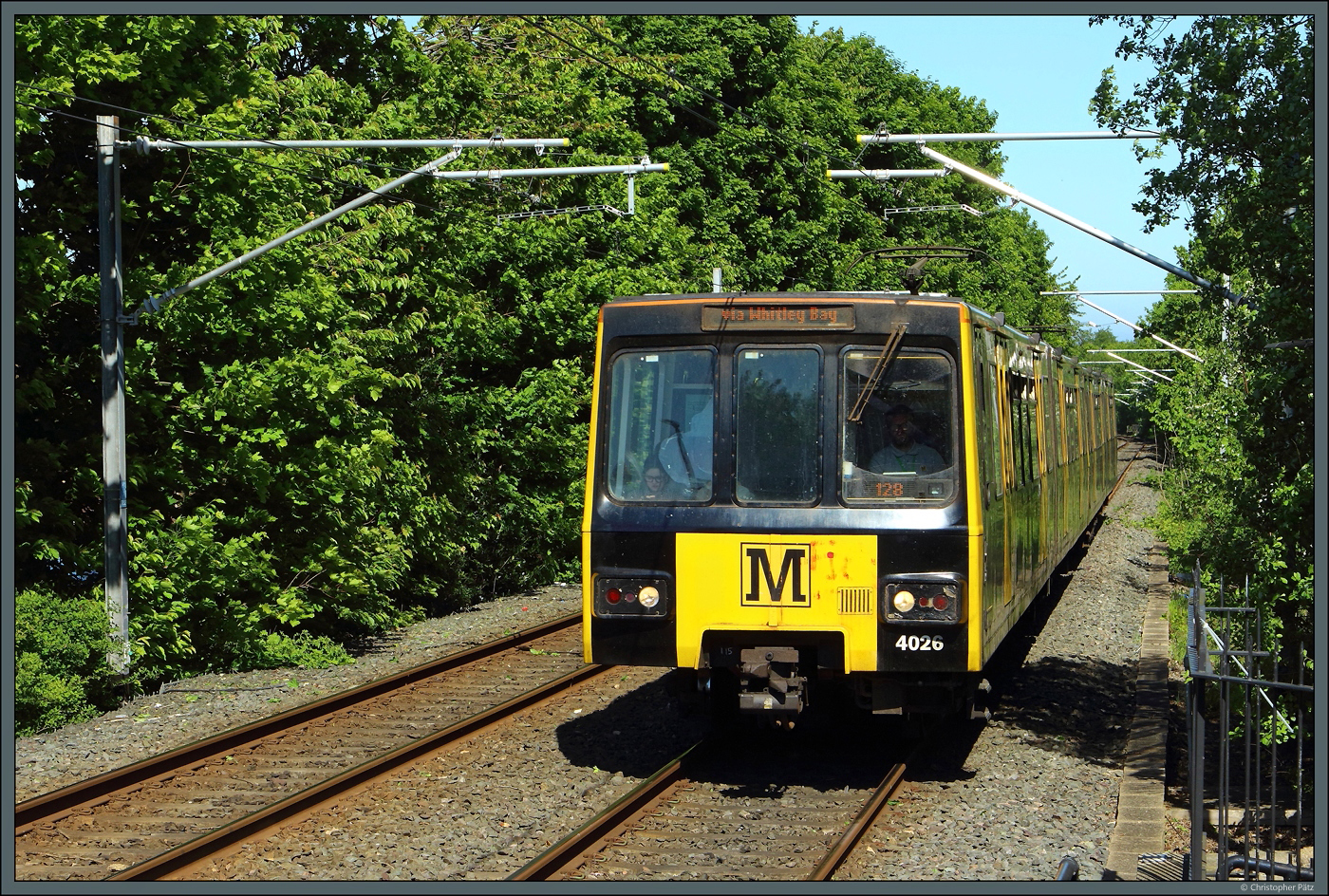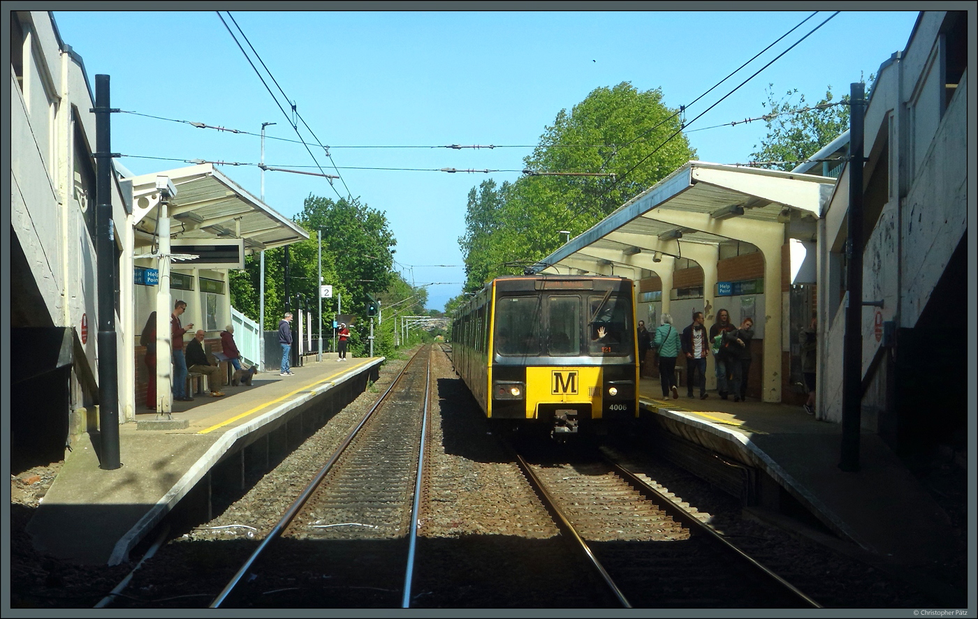Triebwagen 4042 der Metro Newcastle im Endbahnhof Newcastle International Airport. 2010 übernahm DB Regio den Betrieb für sieben Jahre. Die Option einer Vertragsverlängerung um weitere zwei Jahre wurde nicht eingelöst, da sich beide Vertragspartner, DB Regio Tyne & Wear Ltd. und der durch öffentliche Gelder finanzierte Verband Nexus (Besteller), unzufrieden über den bisherigen Verlauf der Kooperation zeigen. 15.04.2016