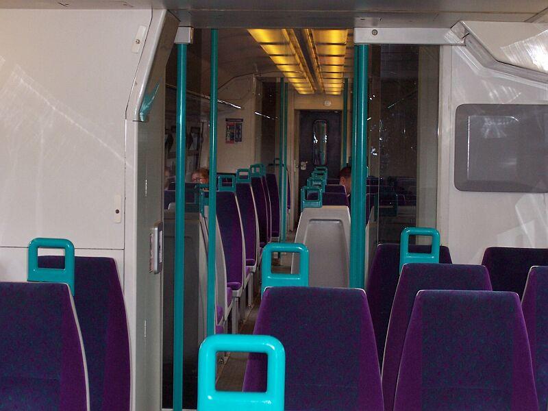 Elektro-Triebzug 323 231 First von Manchester Airport nach Manchester Piccadilly am 21.04.2005 in der Haltestelle Heald Green. Die Class 323 ist in Manchester auf den elektrifizierten Strecken eine Art S-Bahn, nummerierte Linien gibt es aber nicht, es ist immer nur der Endbahnhof und bei verschiedenen Strecken zum Zielbahnhof ein Zwischenbahnhof angegeben. Günther Glauz