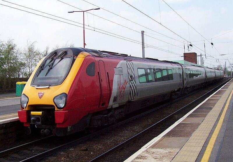 Diesel-Triebzug 221 104 am 21.04.2005 im Bahnhof Wigan North Western. Dieser Zug entspricht etwa unseren Diesel-ICE 605, nur er funktioniert. Günther Glauz