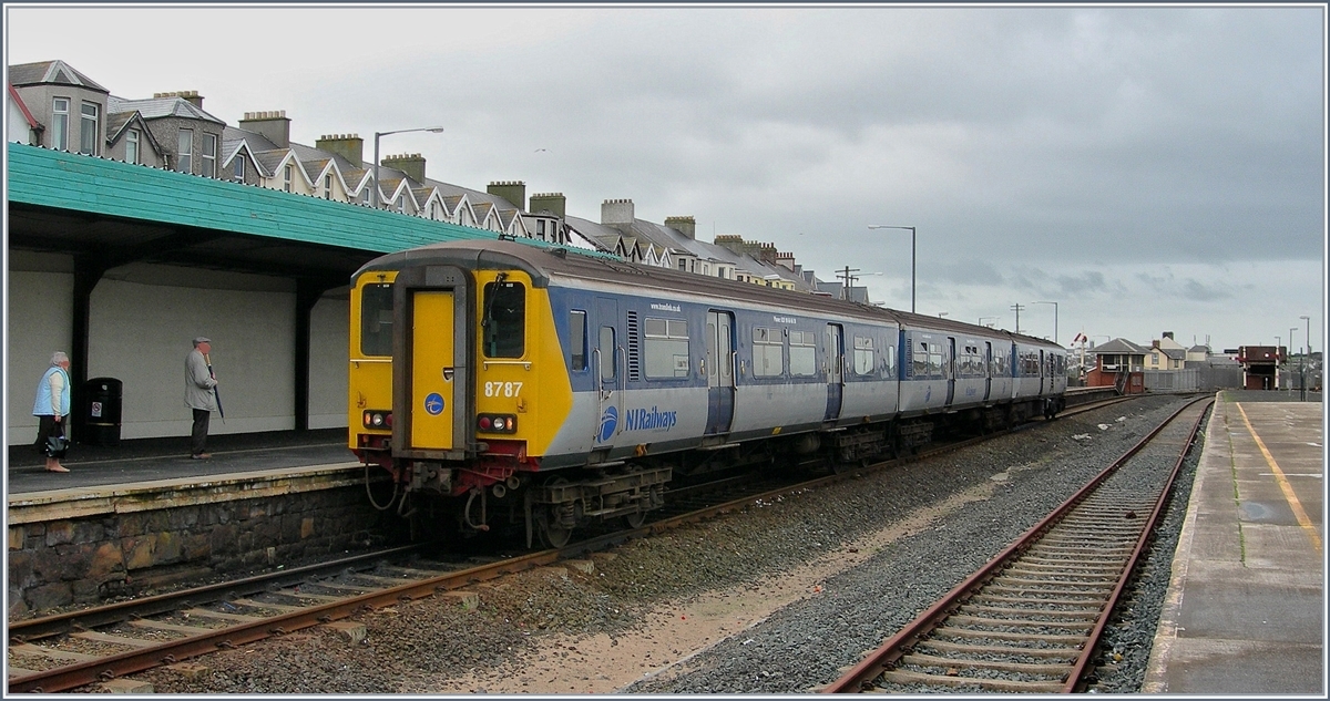 In der Endstation Portrush wartet ein Dieseltriebwagenzug der Class 8000 auf die Rückfahrt nach Coleraine