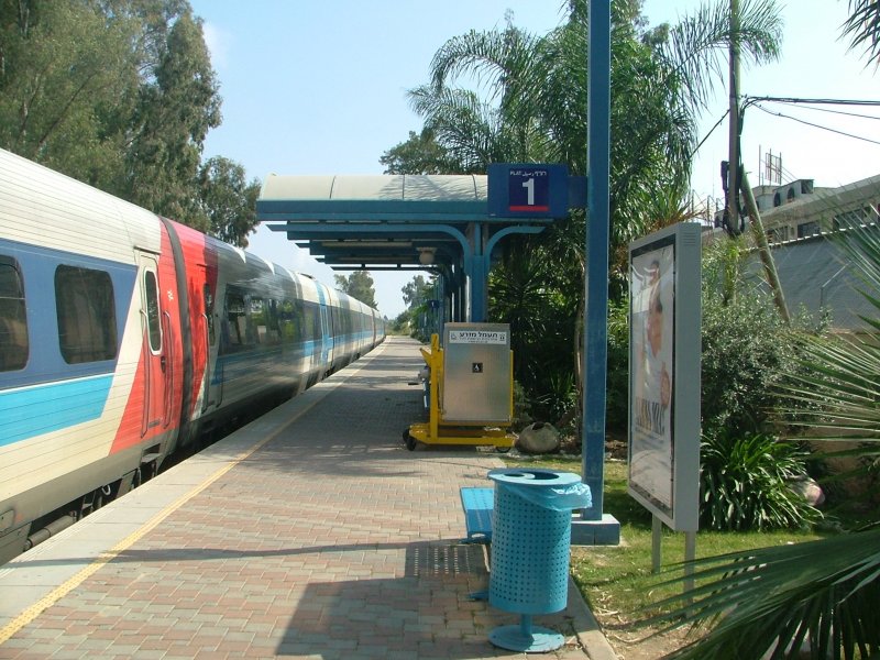 Hier geht es nicht mehr weiter. Nahariya, nördlichster Endpunkt des Israelischen Streckennetzes, am 14.05.2007. Das Gleis im Vordergrund geht weiter in Richtung Libanon, wird aber offensichtlich nicht regelmäßig befahren. Vielleicht ja zuletzt im Juli 2006.