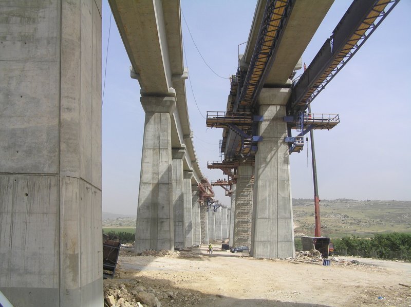 Neubaustrecke Tel Aviv - Modi'In / Jerusalem am 07.05.2007. Die Strecke war zu diesem Zeitpunkt teilweise im Betrieb, die Züge endeten am Flughafen Ben Gurion. Inzwischen sind hier beide Gleise befahren und die Strecke endet jetzt in Modi'In, in einem Tunnelbahnhof. (Israel 07.05.2007)