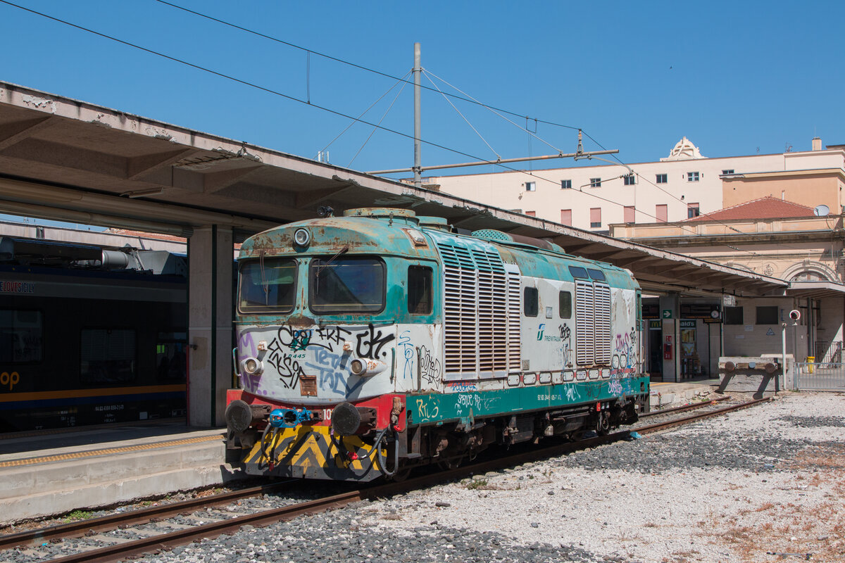 Trenitalia Alstom "Pop" ETR 104 065-A ist aus Messina in Palermo Centrale angekommen. Daneben steht ETR 104 047-B mit einem Regionalzug in Richtung Messina, 23.09.2023. Eisen Bahn