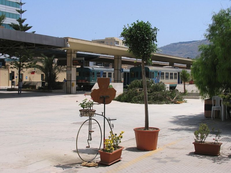 Bahnhof Trapani mit BR 663, 668 und ein Fahrrad am 2-6-2008.