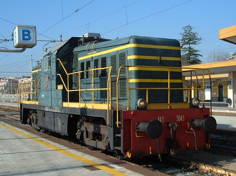 D143 3043 am 04.02.2006 im Bahnhof Catania C, diese Lok befördert die Personenzüge zwischen Personenbahnhof und Abstellbahnhof.