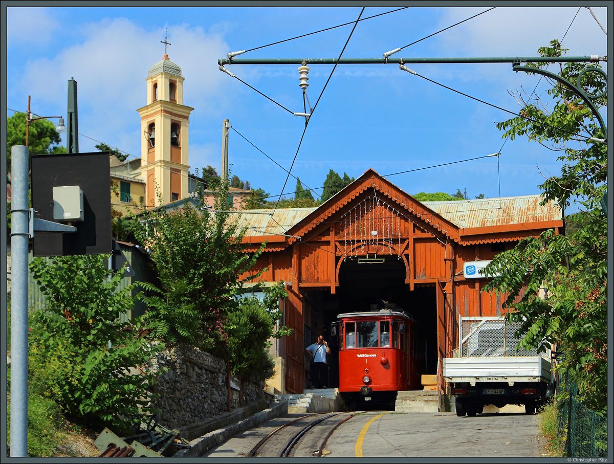 talwärts fahrend kurz vor der Talstation Principe unweit des Bahnhofes Genova Principe.