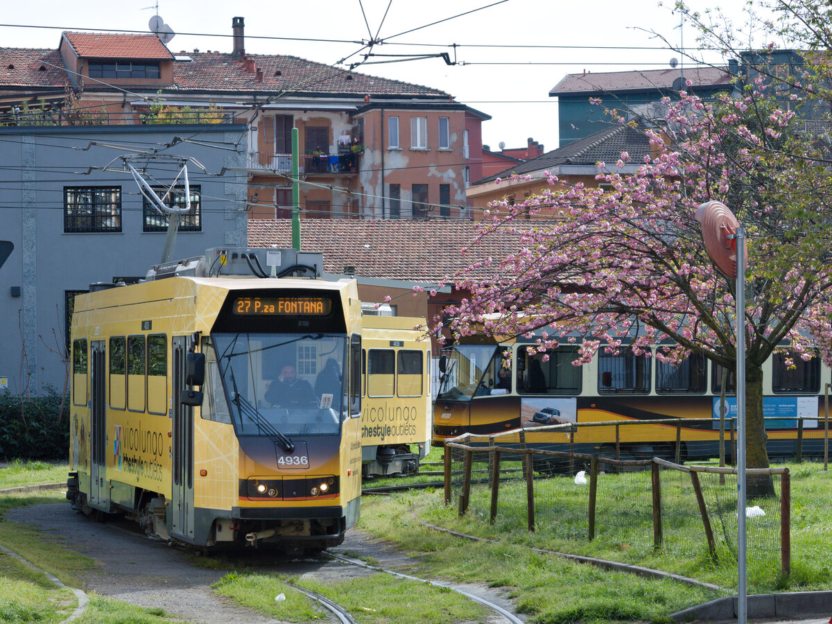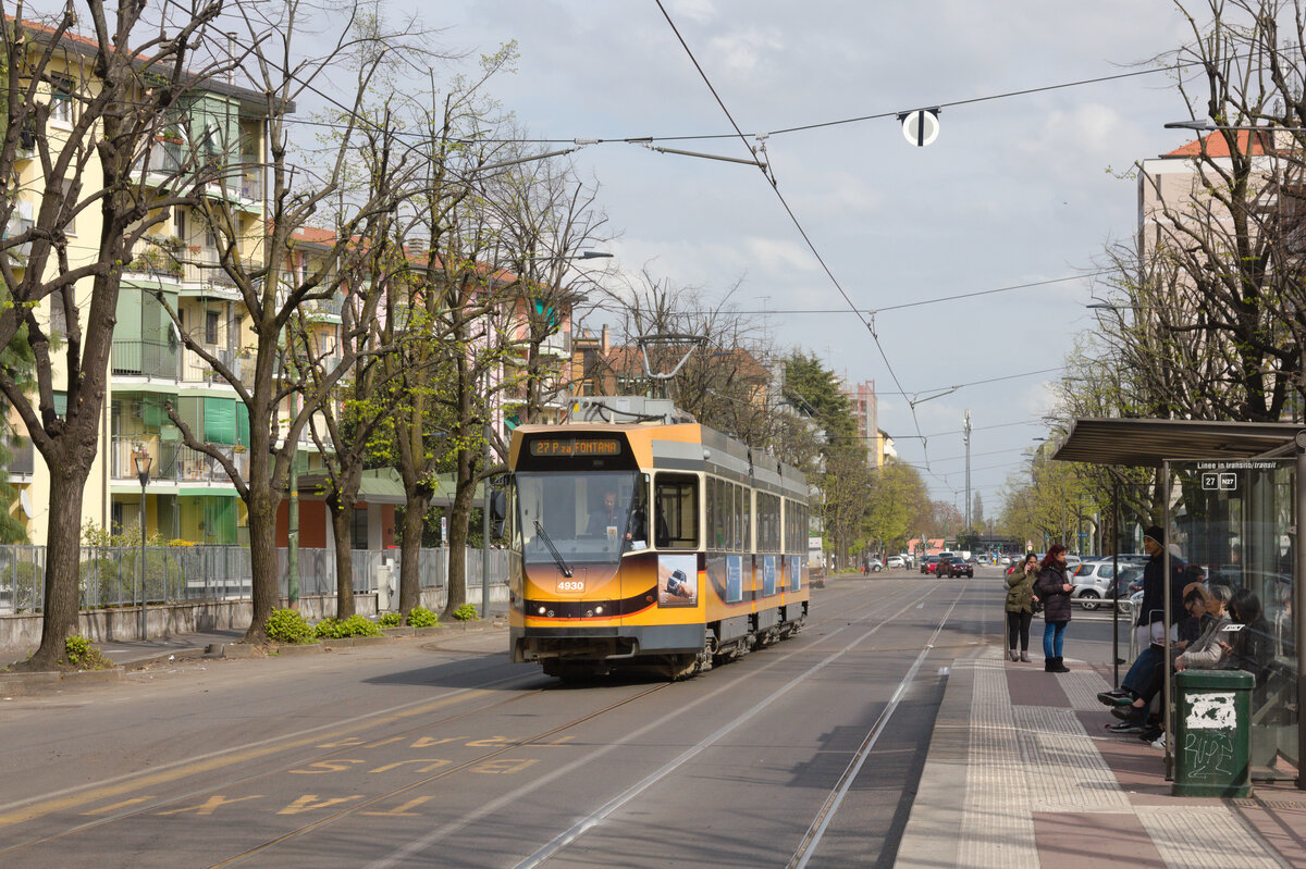 Der modernisierte Tw.4929 der Type "Jumbotram" verläßt die Haltestelle Via Mac Mahon / Via Bramantino. (02.04.2019)