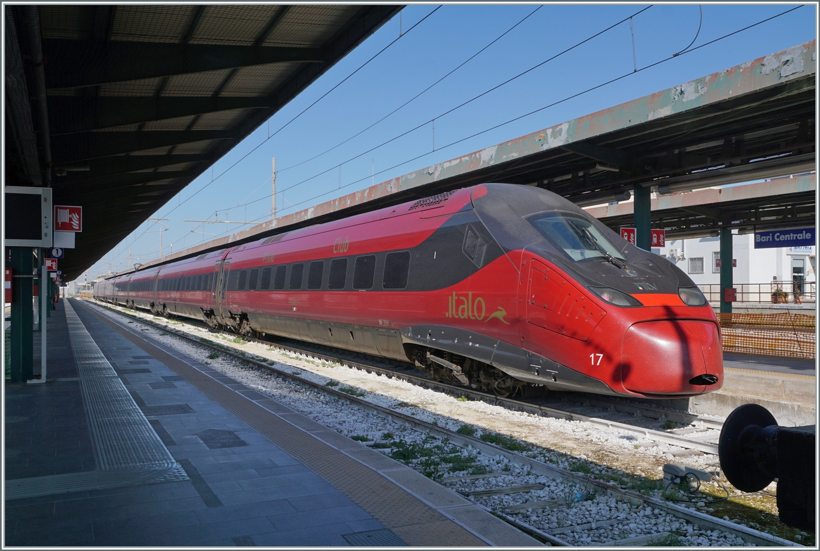 Die .Italo NTV fährt bis in den tiefen Süden Italiens: In Bari wartet der ETR 675 017 auf die nächste Fahrt.