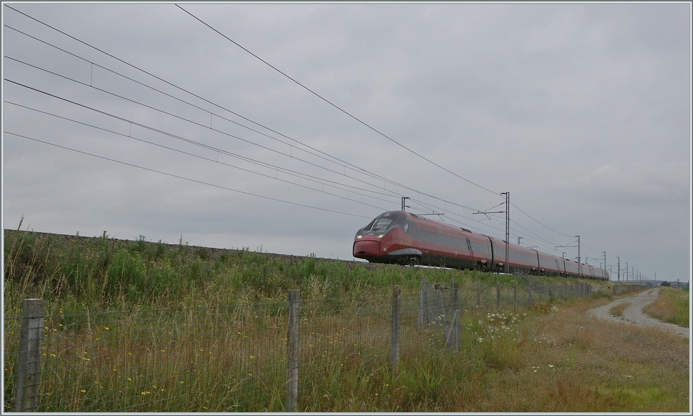 Nach einer kleinen Pause erschien erneut ein .itlao NTV Hochgeschwindigkeitszug, diesmal der ETR 675 002 der bei Livorno Ferraris auf der Fahrt nach Torino festgehaltern wurde. 15. Juni 2024