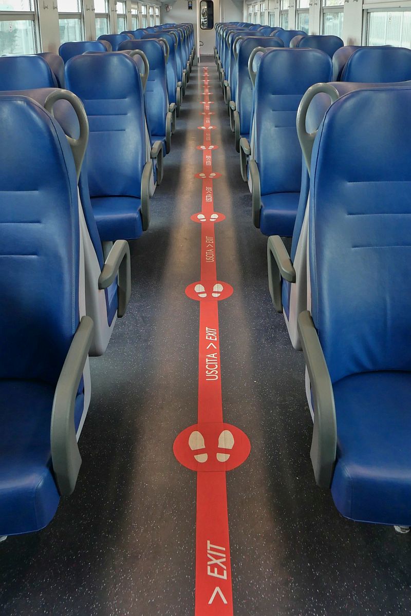 Design ist Geschmacksache - Die runde/ovale Innenbeleuchtung in einem Personenwagen der FS gefällt mir besser, als die eckige Innenbeleuchtung bzw. die "Lichtbänder" in den Wagen der DB. Aus diesem Grund wurde am 19.10.2021 in einem Regionalzug von Torino Porta Nuova nach Ventimiglia auf den Auslöser gedrückt.