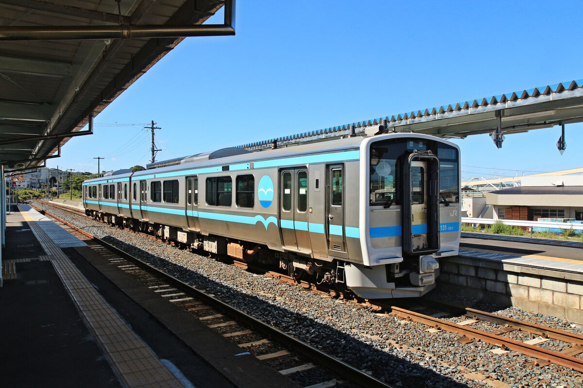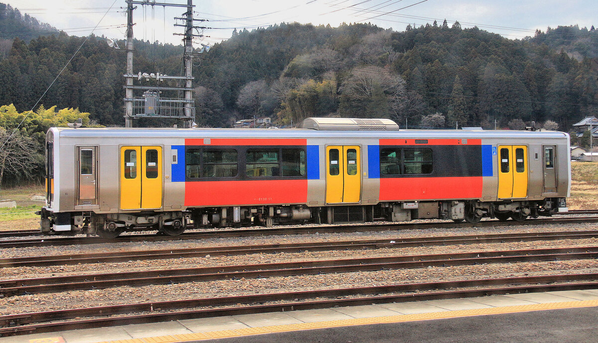 JR East Japan (JR Higashi Nihon), Dieseltriebwagen Serie E130. Im Jahr 2012 wurden für Kururi-Linie auf der Bôsô-Halbinsel nördlich von Tokyo 10 neue Triebwagen mit nur einfachen Längsbänken der Wand entlang in Betrieb genommen, als Serie E130-101 bis 110.