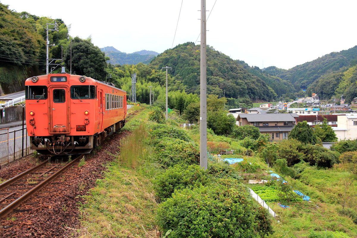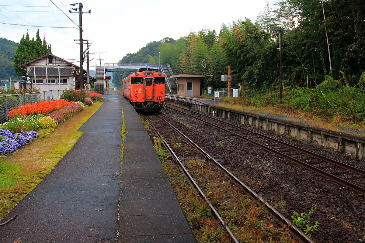 In der Nähe der Industriestadt Tokuyama ganz im Westen Japans wartet KIHA 40 2123 an der Station Suô Kubo. Für Japan sehr aussergewöhnlich ist die kleine Kirche im Hintergrund. 12.Oktober 2015.