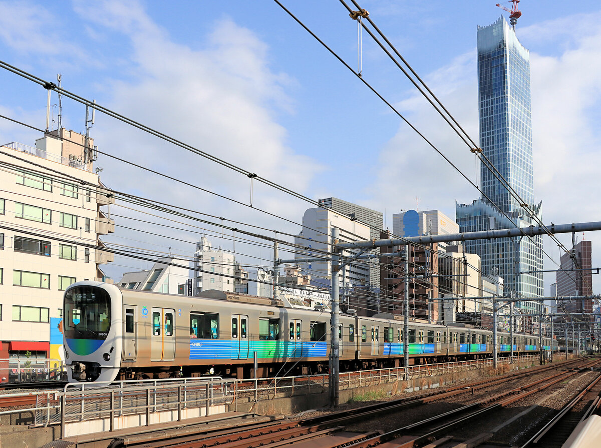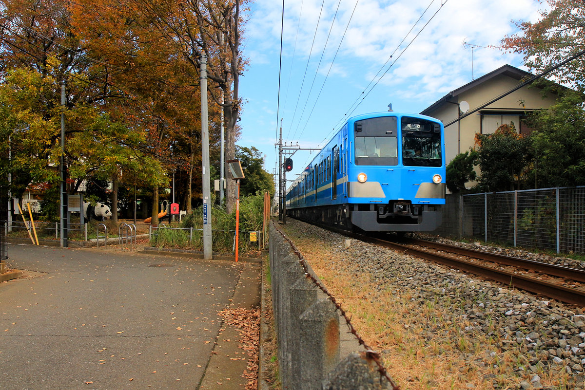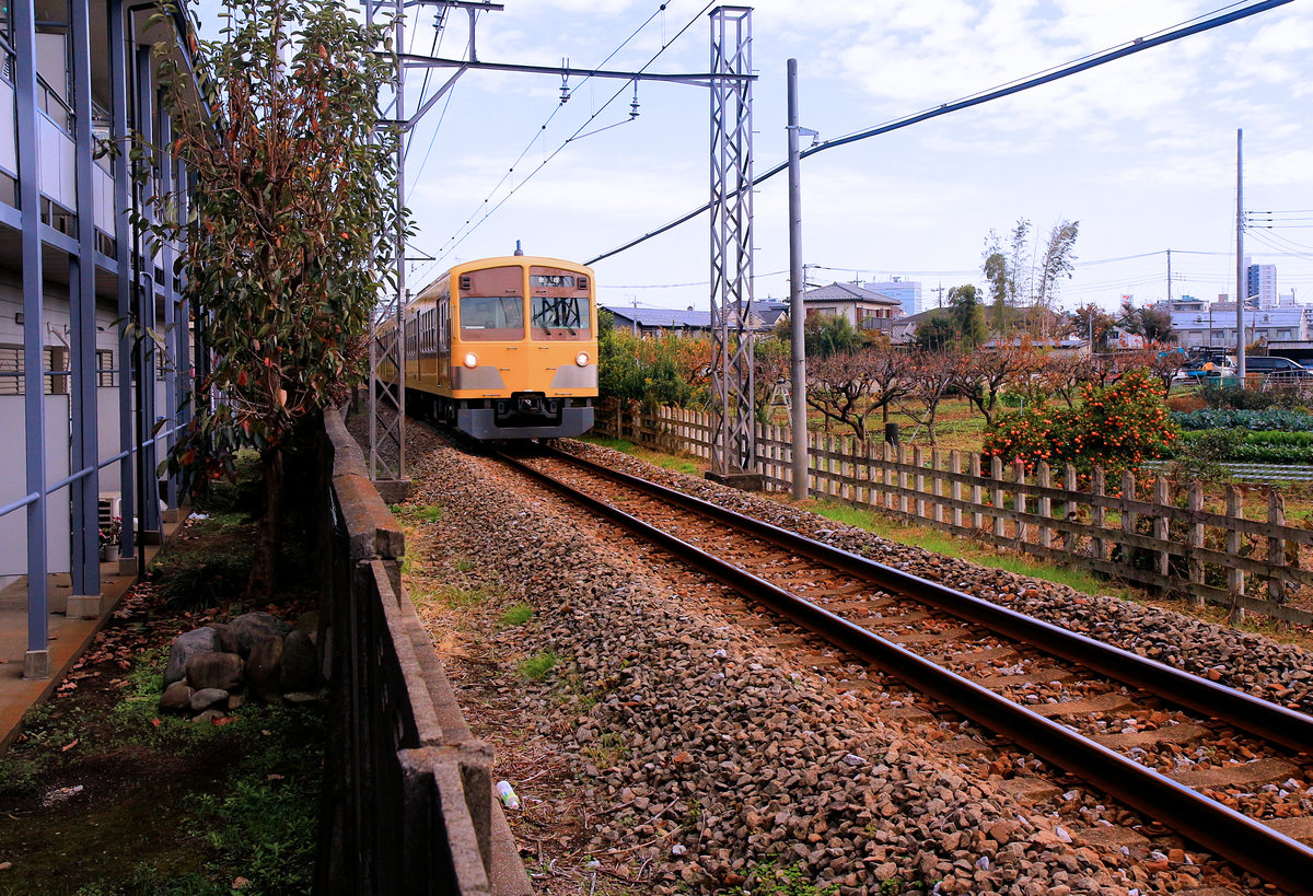 Seibu-Konzern, Chichibu-Linie: Die S-Bahnlinie ab Tokyo-Ikebukuro ist 76,8 km lang und geht ab der der Station Hannô (km 43,7) auf die Strecke durchs Chichibu-Gebirge im Nordwesten von Tokyo über. Diese Strecke wurde 1969 eröffnet und für Güter- und vor allem Kalktransporte intensiv genutzt. Der Güterverkehr ging 1996 - 2007 zu Ende, und heute besteht Druck auf den Seibu-Konzern, die Strecke stillzulegen. Doch noch besteht ein erheblicher Touristenverkehr, da die schöne Natur hier von der Hauptstadt gut zu erreichen ist. Im Bild steht der S-Bahn-Achtwagenzug 2069 in der Endstation Chichibu, während im Hintergrund der alte Zug 1007 der Chichibu-Bahn das Tal herabkommt. 23.Oktober 2011.