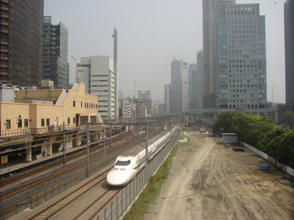 Shinkansen Richtung Osaka auf der Stadtstrecke in Tokyo ( Hamamatsucho ) Linksverkehr... - 28/06/2007