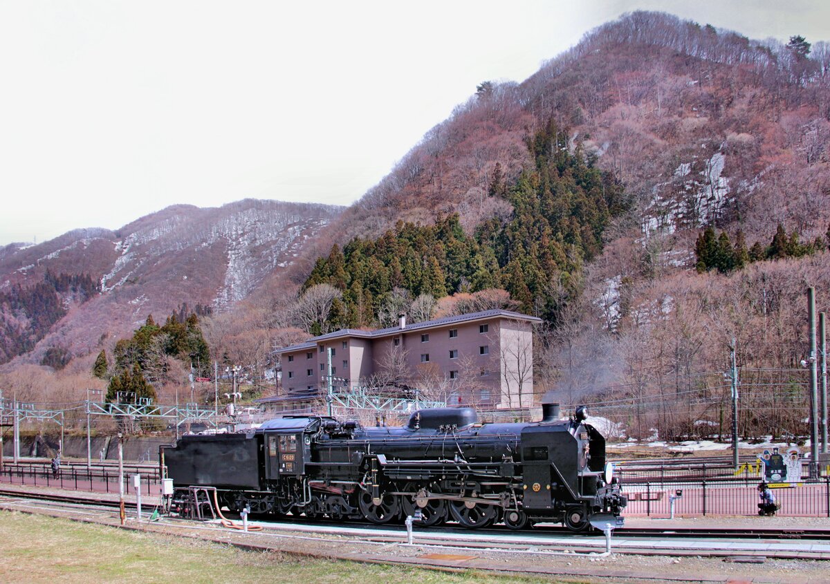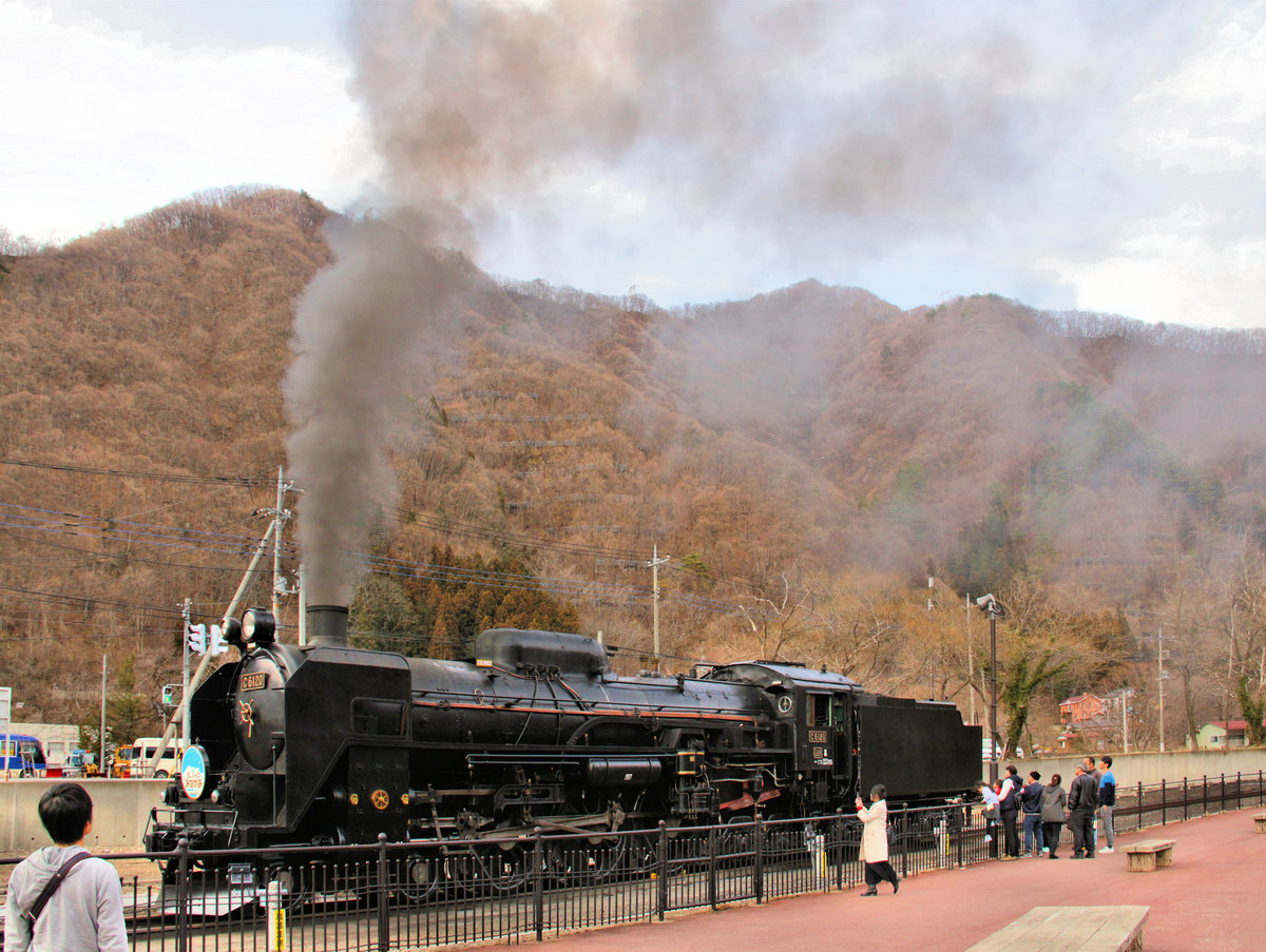 Die japanische C61 (Achsfolge 2C2) wurde in 33 Exemplaren 1947-49 erbaut; sie waren vor allem auf den schwierigen Strecken Nordjapans im Einsatz, verbrachten ihre letzten Tage dann allerdings an der Südostküste der Insel Kyûshû. Die Lok C61 20 (im Bild) entstand aus Bestandteilen einer anderen Lok 1949 und wurde 1973 ausgemustert und in einem Park ausgestellt. Im Jahre 2011 konnte sie vollständig restauriert durch JR East Japan wieder in Betrieb genommen werden. Hier steht die Lok in Minakami, bereit für die Rückfahrt nach Takasaki, etwa 105 km nordwestlich von Tokyo. 24.März 2018 Peter Ackermann