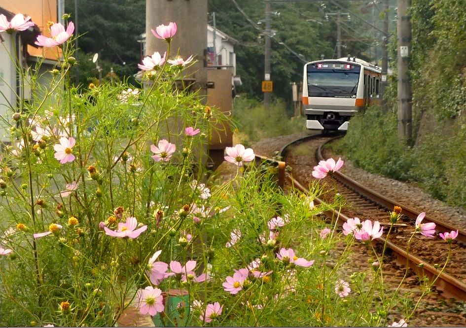 Altbautriebwagen ehemalige Staatsbahn JNR Serie 72: Gleichstromzüge ursprünglich für die S-Bahn, 1952-1958 entstanden. 20 m, 4-türig. Die Serie umfasst zahllose Untertypen aus verschiedensten Um- und Neubauaktionen; im Bild KUMOHA 73 519 (Motorwagen mit später angebautem Führerstand), links davon ein Zwischenwagen Typ SAHA 78. Ôme bei Tokyo, 29.Januar 1977.