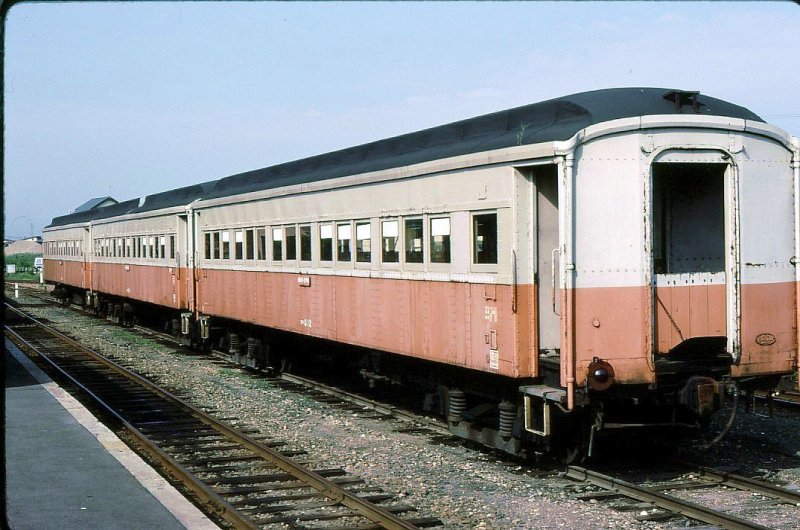 SU-HA 32 - Altbau-Personenwagen: SU-HA 32 sind die ersten 20m langen Stahlwagen; die Hauptserie dieser charakteristischen Wagen mit den vielen kleinen Fenstern wurde 1932-1942 (727 Wagen) gebaut. Im Bild SU-HA 32 838 in Otoineppu (Nord-Hokkaido), 27.Dezember 1971.
