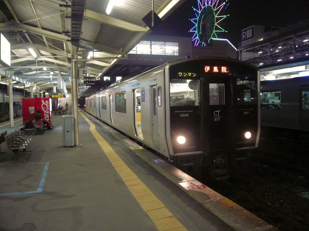 Serie 817: Hallo Gegenzug! Kreuzung mit Zug Nr.19 in den winterlichen Bergen oberhalb Kami Ijûin im Südwesten der Insel Kyûshû. 1.Dezember 2010. Aufnahme eines mitfahrenden JR-Beamten, der alle Bewegungen gemeinsam mit dem Wagenführer mitmacht. (Bild von hinter der Abschrankung zum Frontbereich gemacht) KAGOSHIMA HAUPTLINIE (SUED)