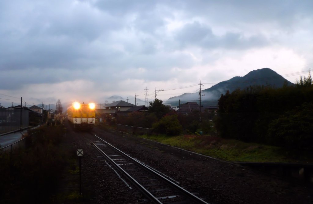 Im äussersten Westen der japanischen Hauptinsel Honshû: Triebwagen KIHA 40 2075 an der Pass-Strecke der Yamaguchi-Linie in Niho, 3.Dezember 2010. Peter Ackermann