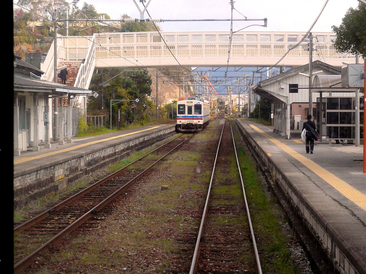 Mit Zügen der Serie 105 der Inlandsee entlang: Nachdem sich mit den kleinen Schiffswerften und etwas Küstenfischerei kaum mehr viel verdienen lässt, ist das Leben entlang der Kure-Linie sehr still geworden. Viele Menschen sind in die regionale Hauptstadt Hiroshima abgewandert. Aufnahme des Zuges 105-14 in Nigata, 6.Dezember 2010. Peter Ackermann