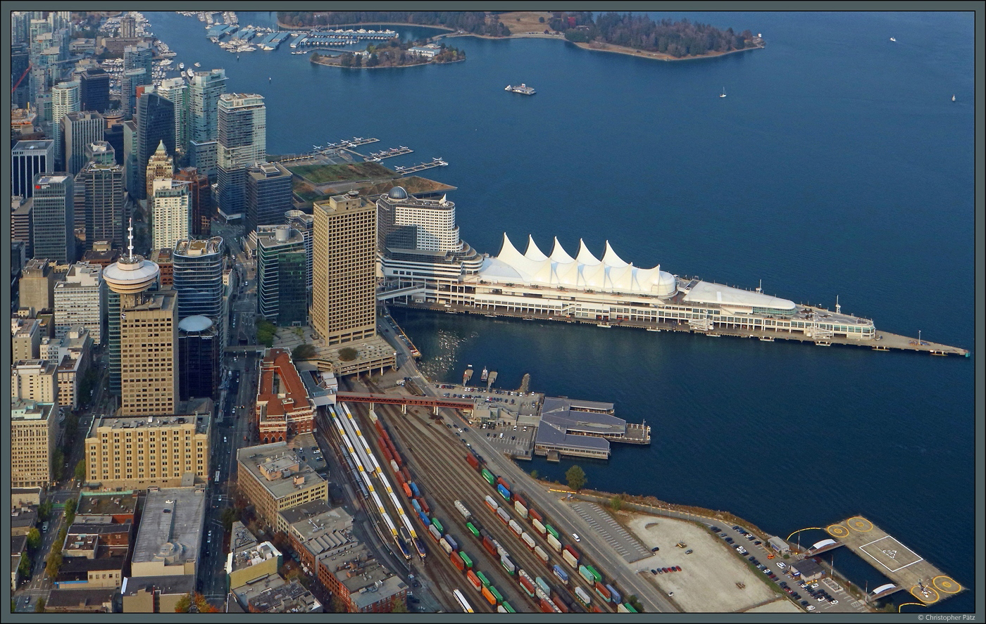 Die Vancouver Waterfront Station am 12.08.2013. Fernzüge fahren hier nicht mehr, dafür der Skytrain, eine Regionalzuglinie sowie Busse und auch Schiffe nach North Vancouver.
