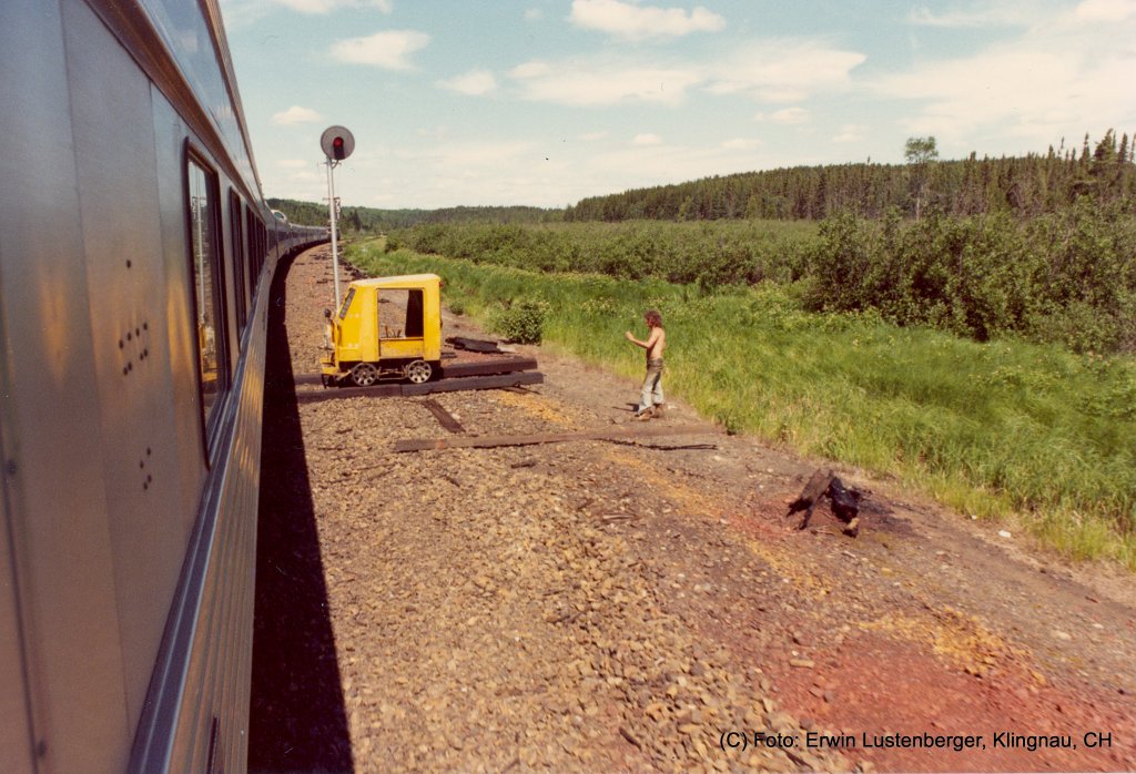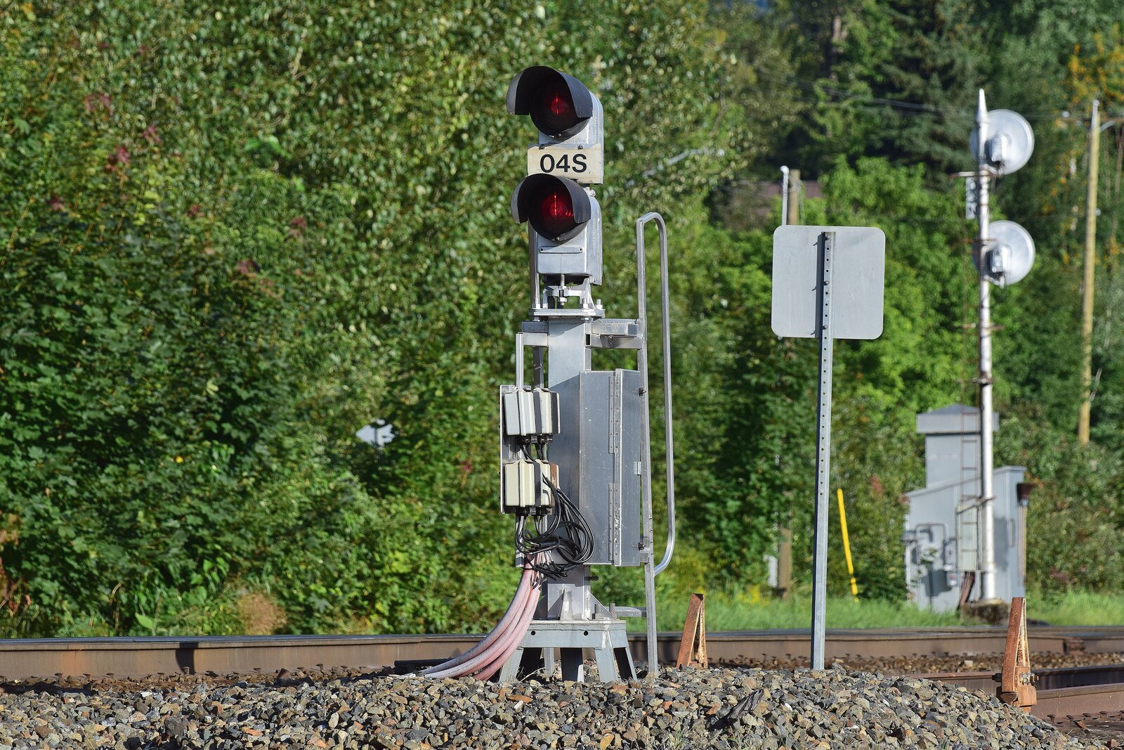 Blick auf das Einfahrsignal 04N in Revelstoke. Dieses Signal ist eins von 7 verschiedenen Variationen in Kanada. Theoretisch kann dieses bis zu 37 Kombinationen anzeigen. Das Regelwerk führt hierzu nur 34 Kombinationen auf.