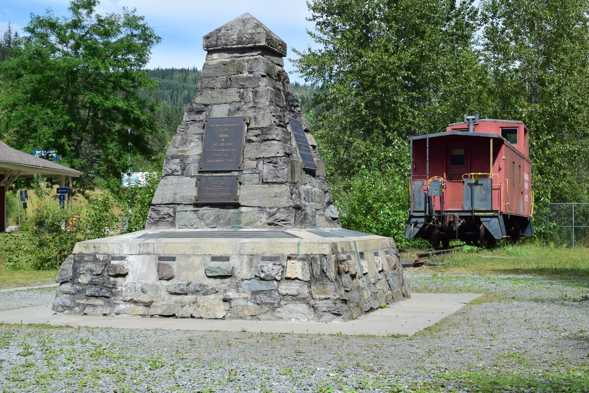 The Last Spike. Bei Craigellachie wurde am 7. November von Lord Strathcona der letzte Gleisnagel der transkontinentalen Bahnstrecke eiingeschlagen und somit fertig gestellt. Heute ist dieser Ort eine Art kleine Ausstellung.