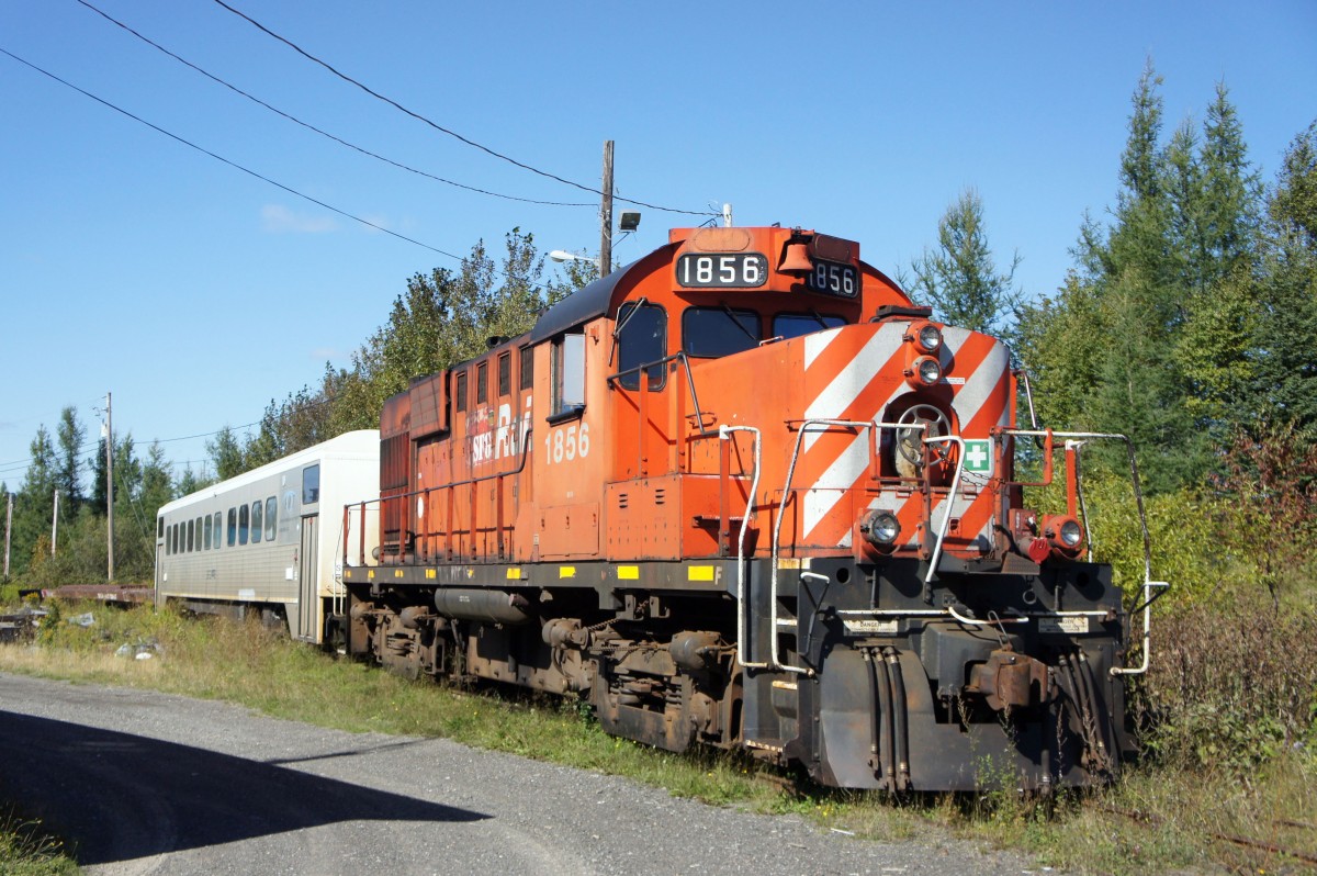 Kanada / Québec: SFG Rail (Société de chemin de fer de la Gaspésie / Gaspe Railway Company) / Scenic Train l'Amiral: Touristenzug "l'Amiral", an der Spitze des Zuges SFG 1849, Loktyp: Rebuilt MLW RS18u. Aufgenommen im September 2014 im Bahnhof von Gaspé, dem gleichzeizigen Bahnstreckenende. Bahnstrecke Matapédia - Gaspé. Aufgenommen im September 2014.