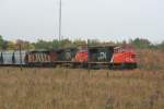Übereinander gestapelte CN-Container im Güterzugverband der CN; Ramana,13.10.2008