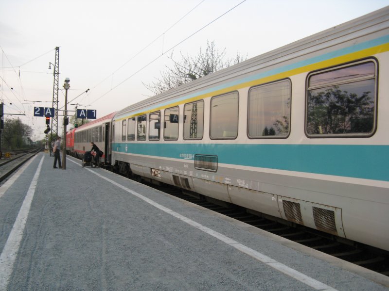EC 112 mit einem ausserplanmässigen HZ-Wagen.Am 06.04.09 beim Halt in Bensheim.
