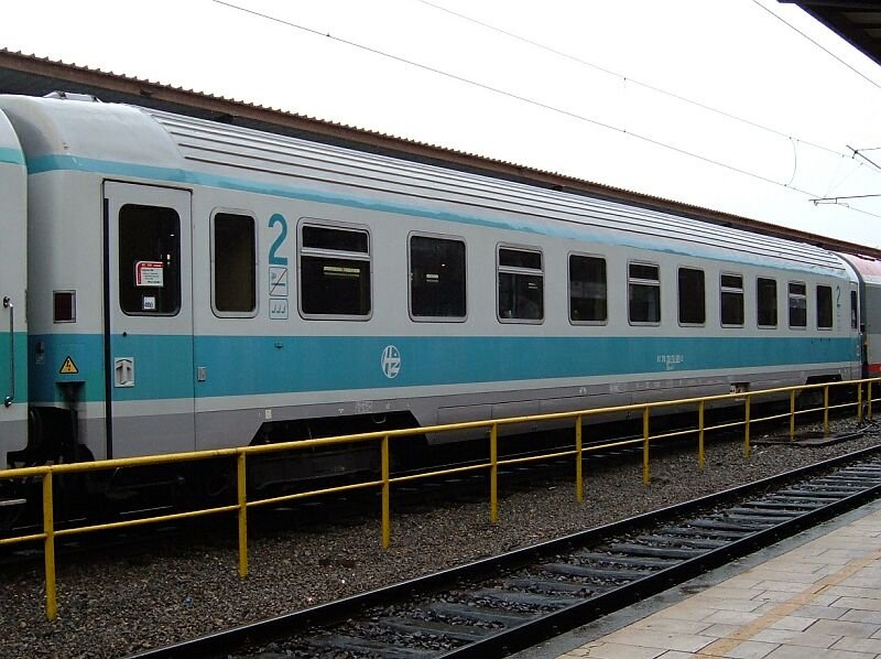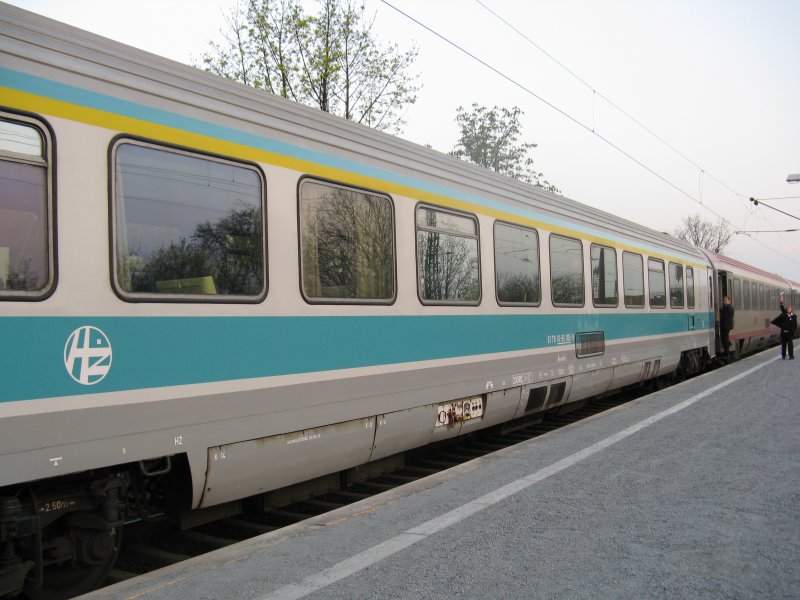 Sitzwagen 2.Klasse der Hz im April 2006 im Bahnhof Zagreb Gl.kol.