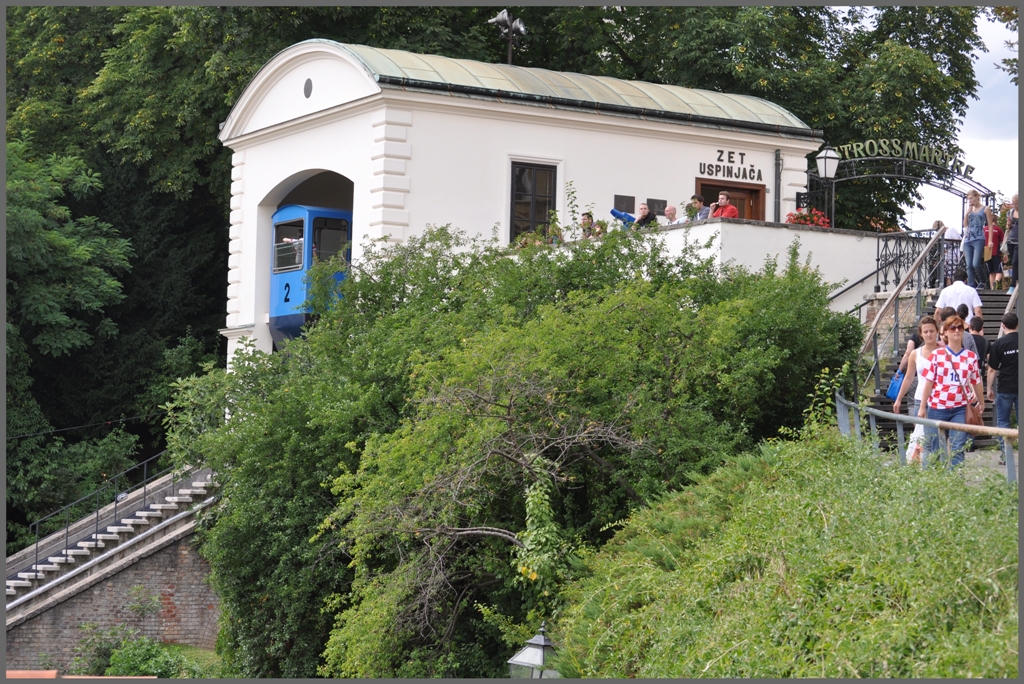 Die Uspinjača (Standseilbahn) von Zagreb – mit 66 Metern Länge und 30,5 Metern eine der kürzesten und steilsten Bahnen der Welt – gesehen von der Tomićeva ulica.