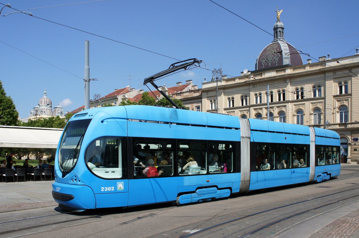 Kroatien / Straßenbahn Zagreb / Tramvaj Zagreb / Zagrebački Električni Tramvaj (ZET): CroTram TMK 2300 - Wagen 2302, aufgenommen im Juni 2018 am Hauptbahnhof in Zagreb.