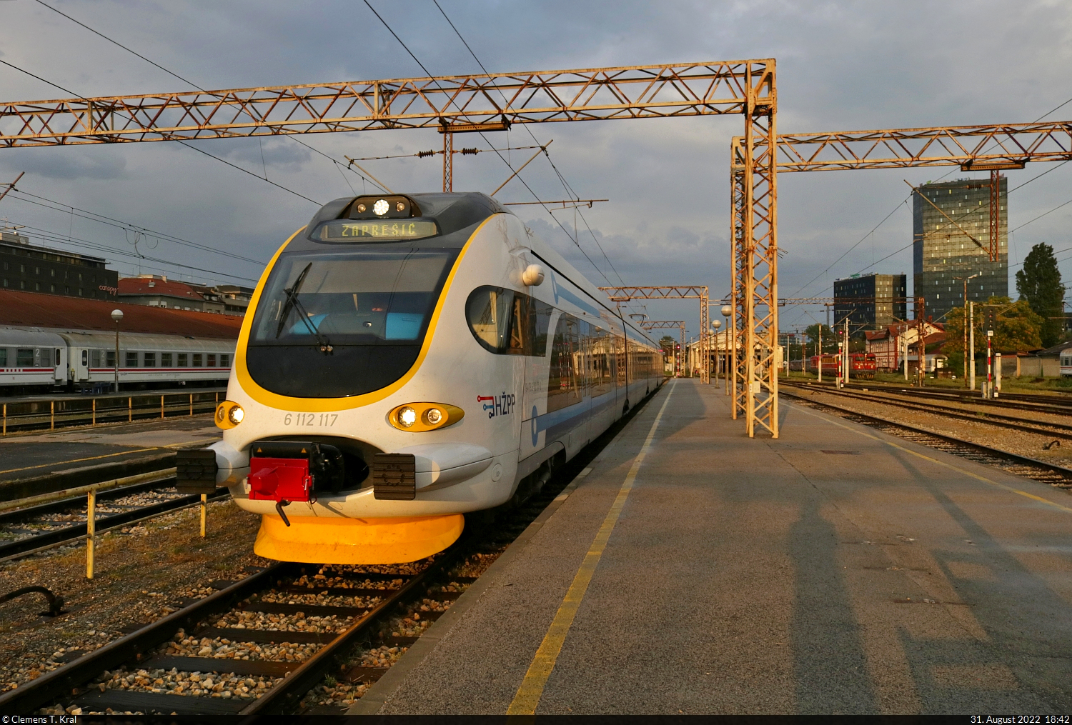 Noch ein Zufall, denn mein Schnellzug nach Belgrad überholt den 6112 001-0 auf einer Zwischenstation, wo mit Musik und Trachtengruppe der neue Zug gefeiert wurde. (03.07.2011)