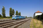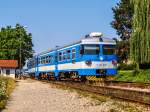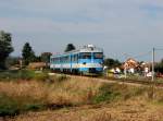 Mit gut einer halben Stunde Verspätung verlässt am 15.9.2022 der 7121 017 als R3311 von Kotoriba nach Varaždin den Bahnhof Čakovec in einem fast 90° Bogen.