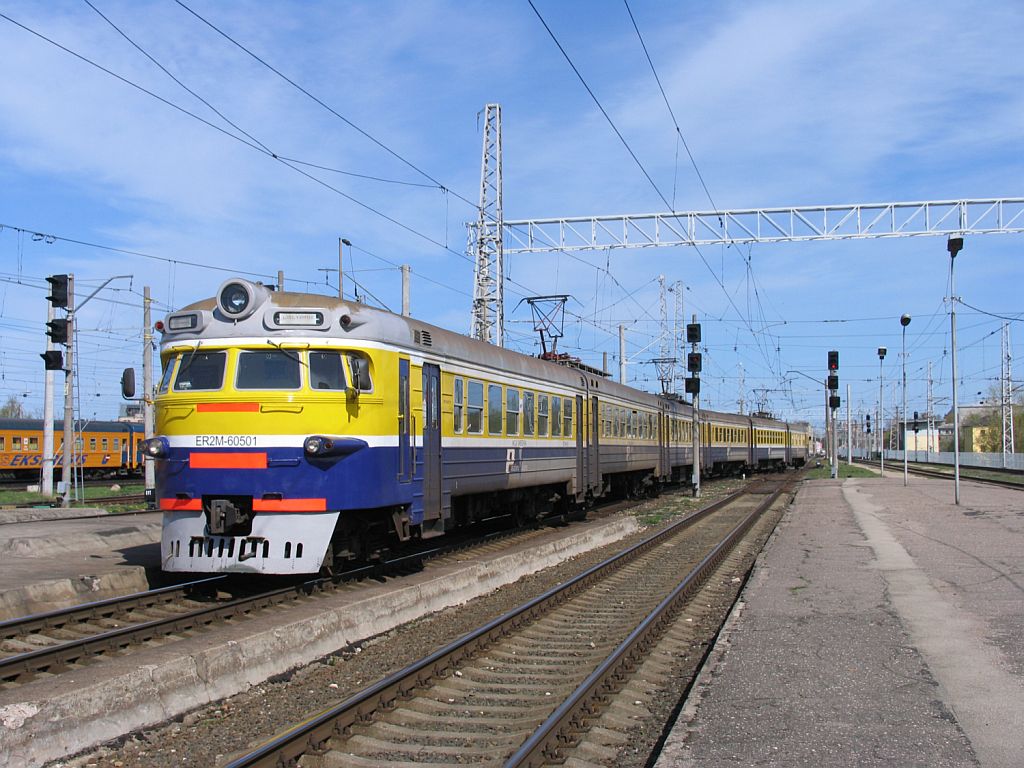 ER2M 60509 am 19.05.2016 um 13:45 Uhr bei der Einfahrt in den Haltepunkt Saulkrastu auf dem Weg von Skulte von nach Riga.