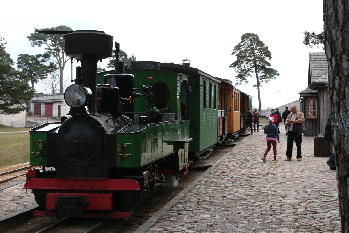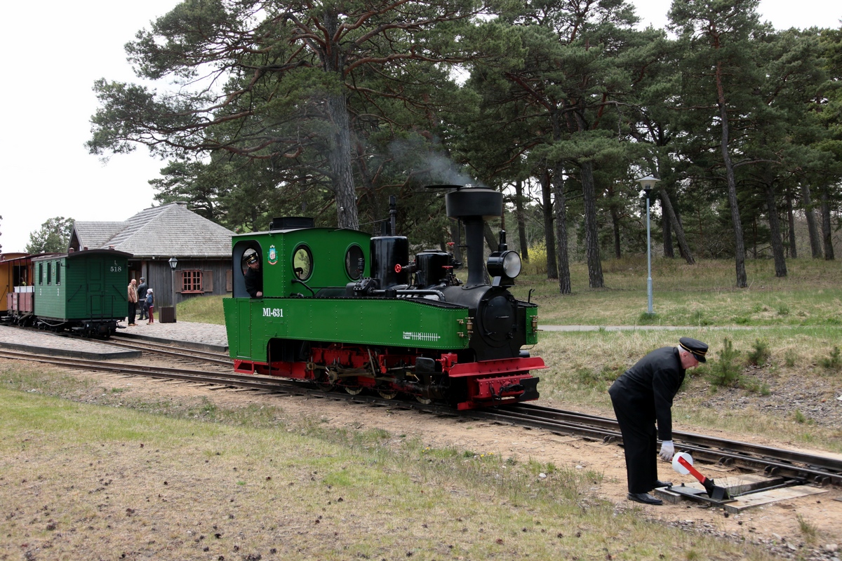 Die MI-631 mit ihrem Zug im Bf Muzejs auf der Mazbánítis in Ventspils am 14.05.2017